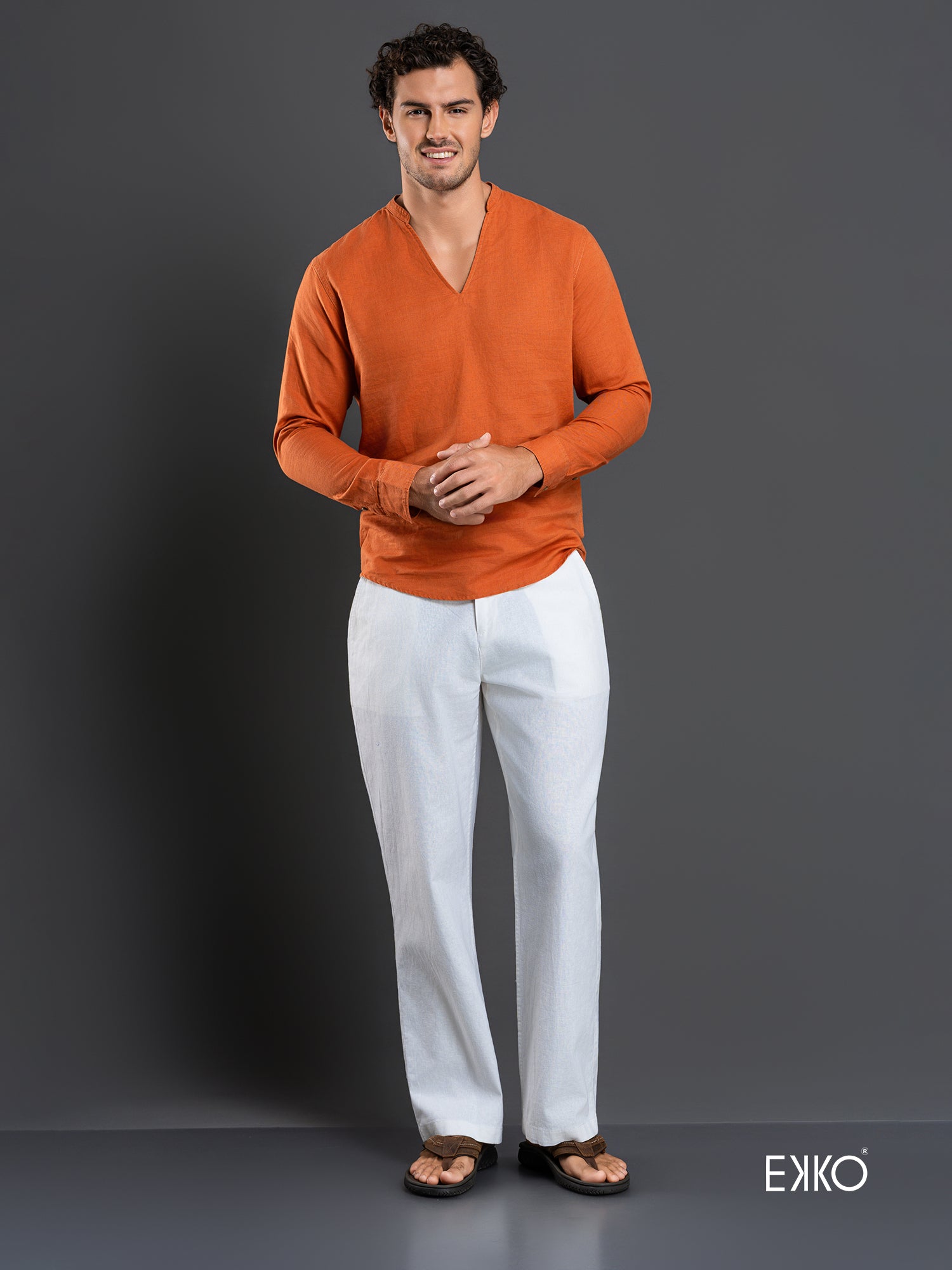 - Style with your favorite pair of EKKO Linen Shorts or Pants.