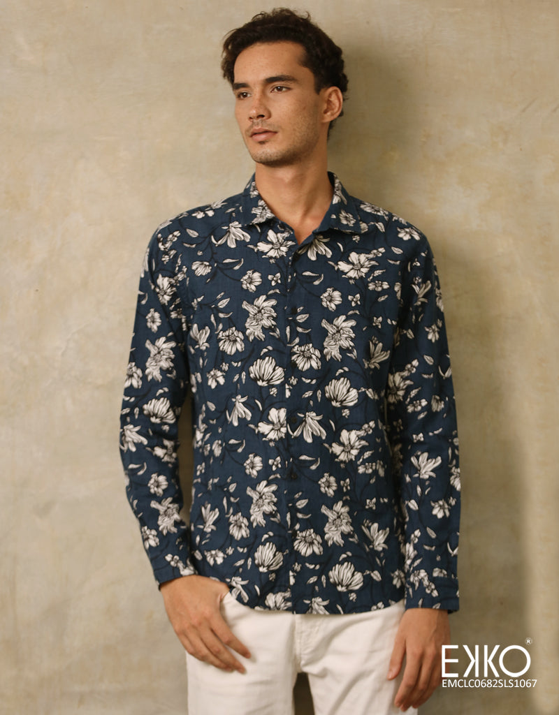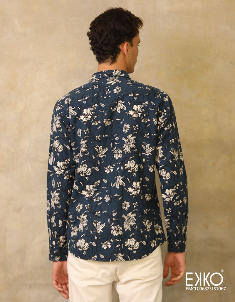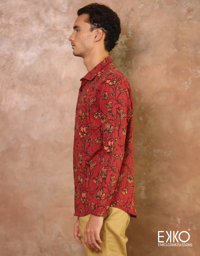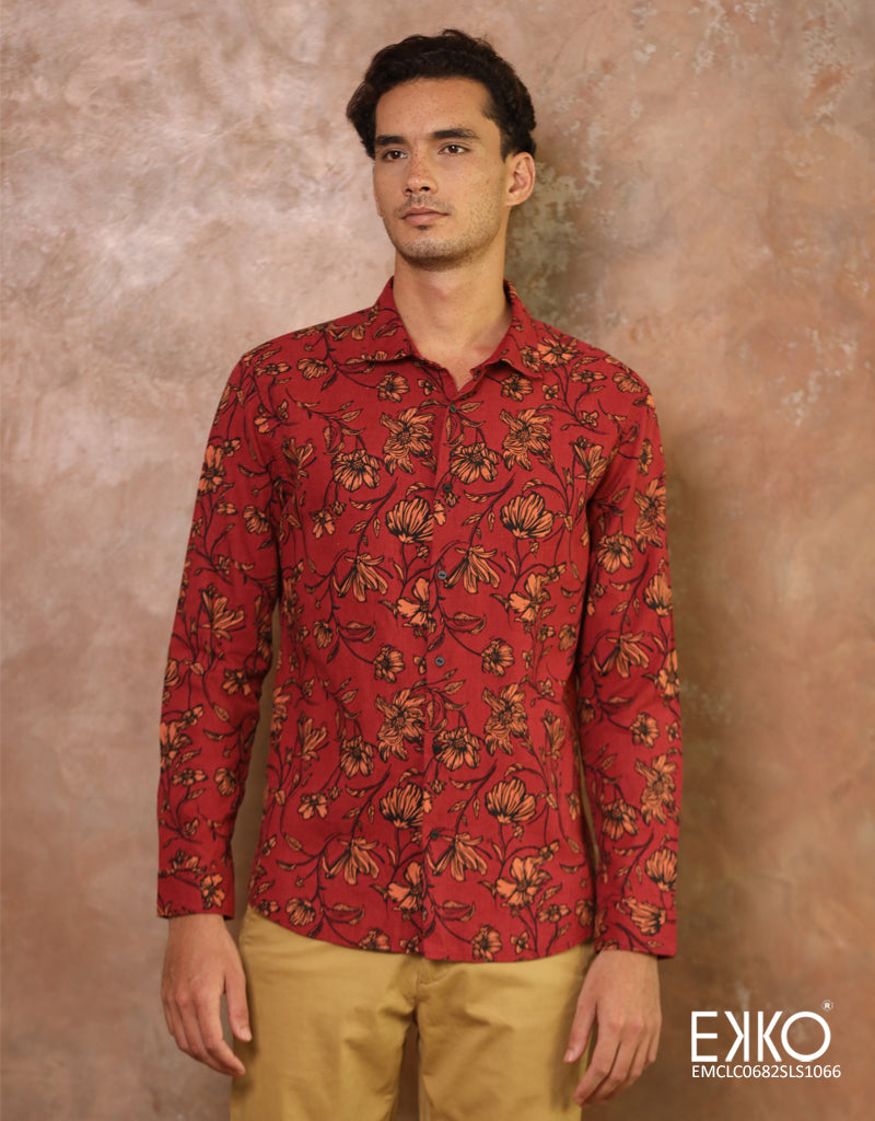 Red | Navy Linen Cotton Shirt EMSACS0682LCLS