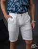Low-rise beige linen shorts with a sleek metal zipper, combining breathable comfort and modern utility. Perfect for casual, warm-weather looks.