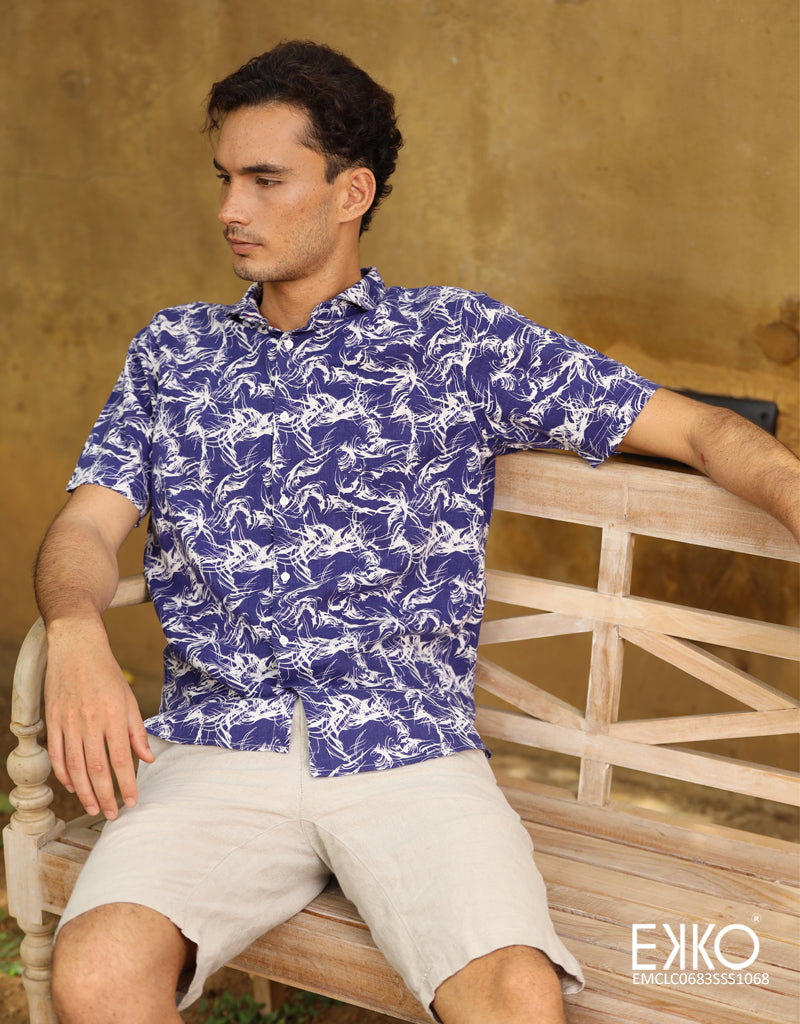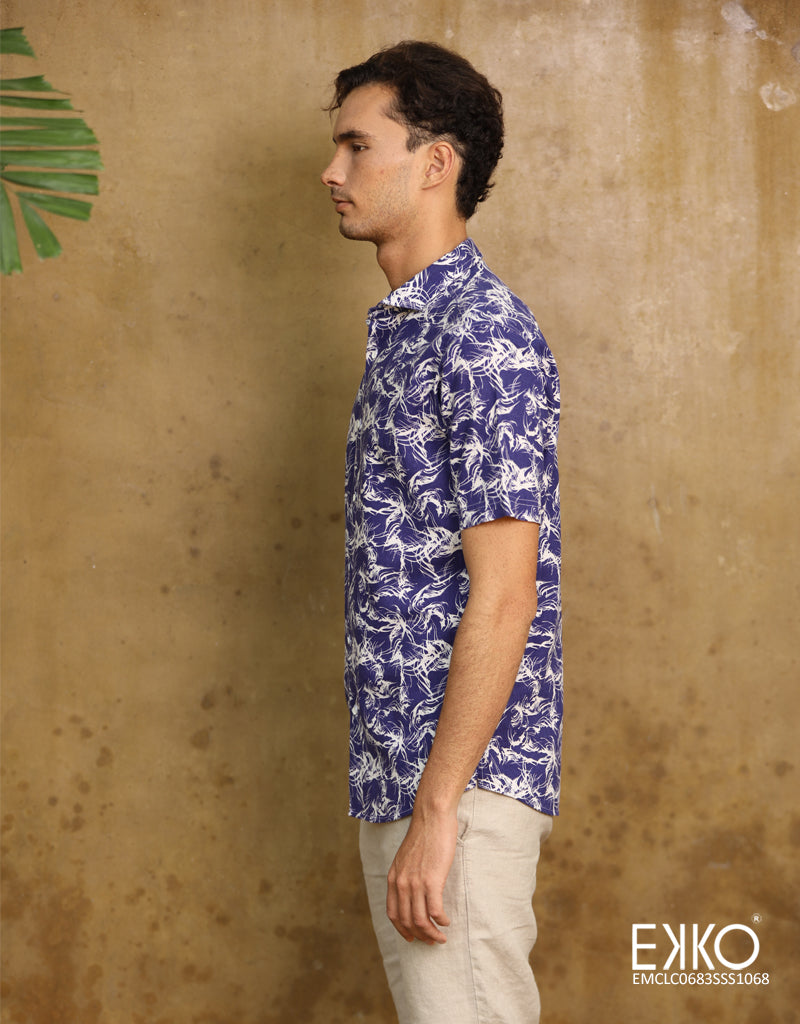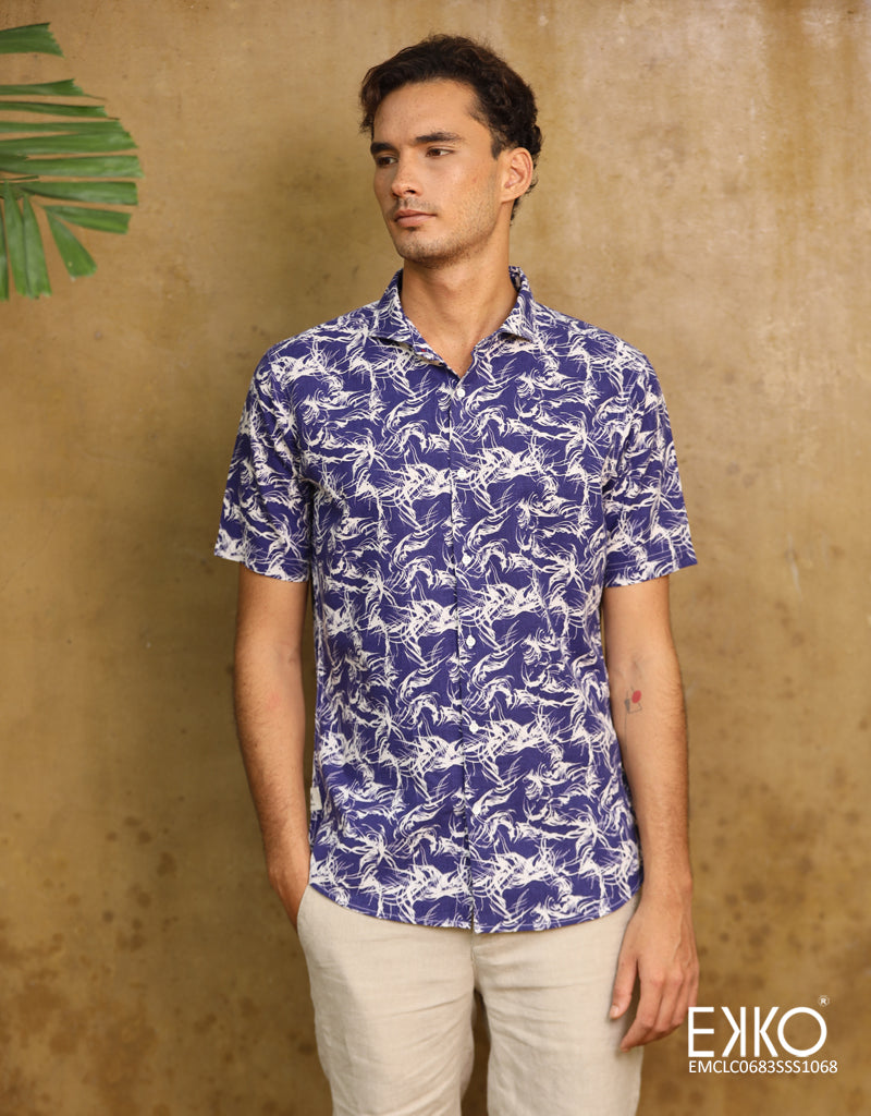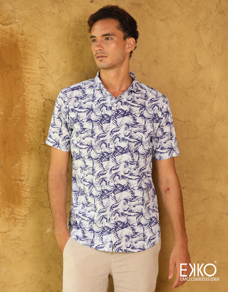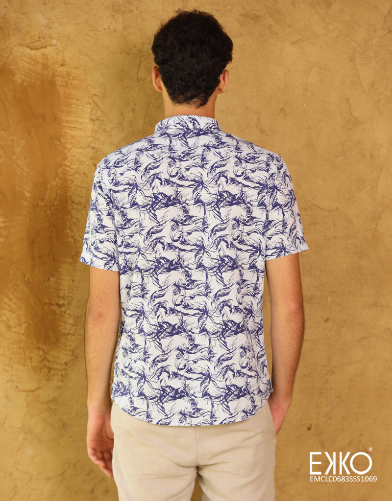 White | Blue Linen Cotton Shirt EMSACS0683LCSS