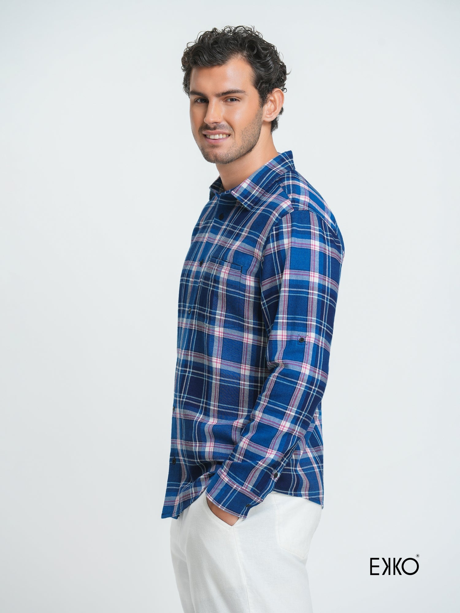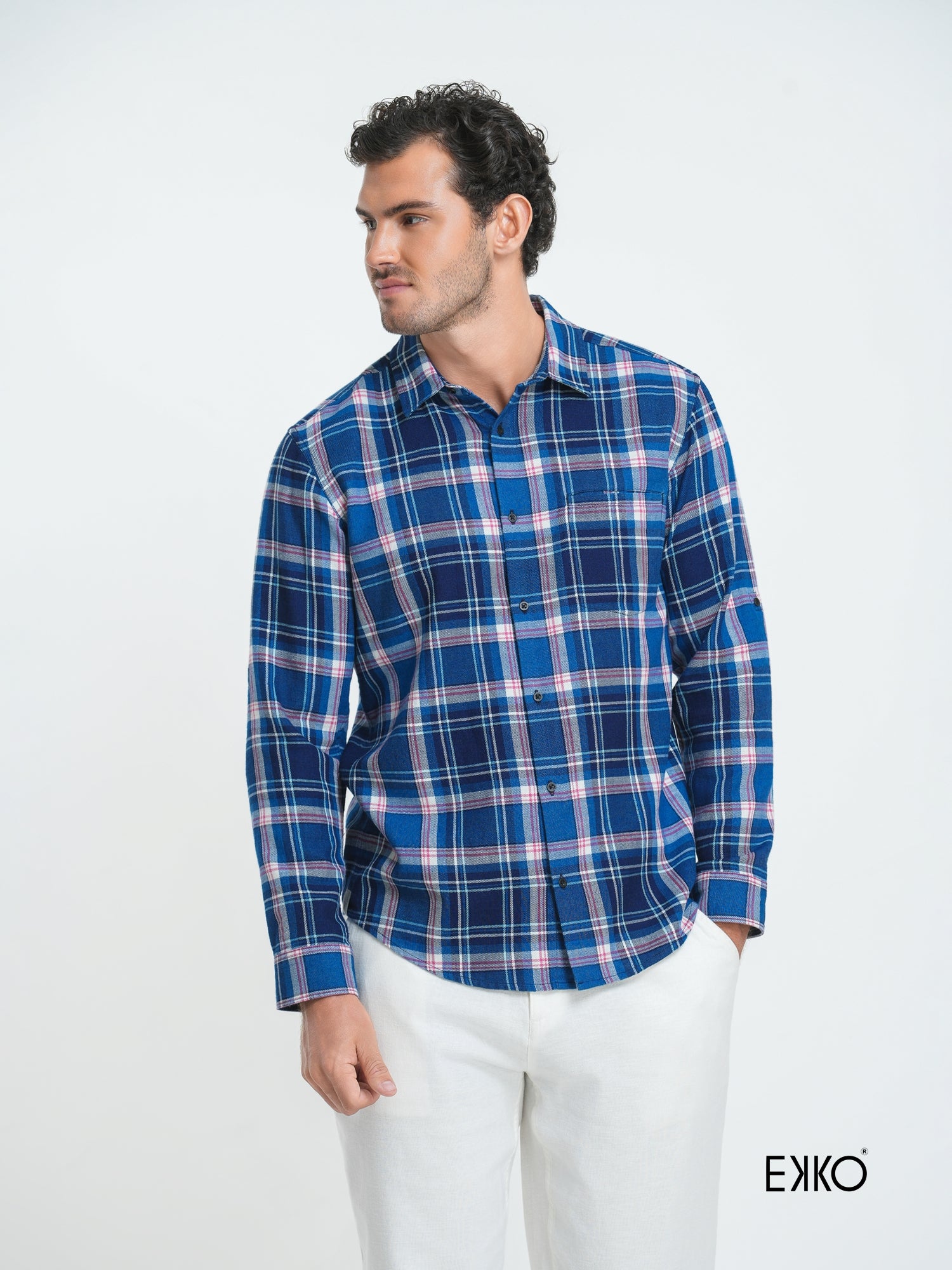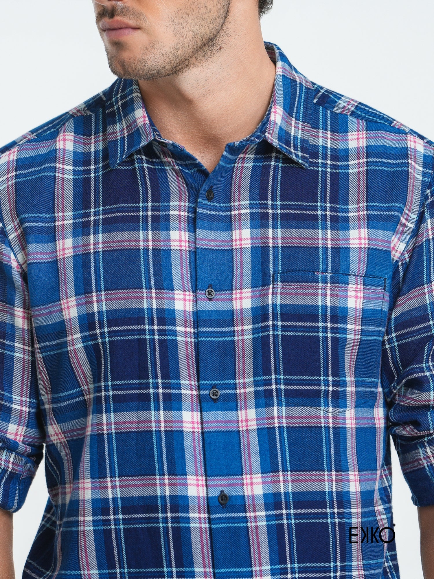 Crafted from 100% pure cotton, this slim fit shirt combines comfort with a sharp, modern silhouette. The classic check pattern in blue, white, and pink adds a vibrant yet refined touch. Designed with a standard collar and long sleeves, it also features a sleek welt pocket at the front — a subtle detail that enhances its tailored aesthetic. Ideal for both casual and smart-casual wear, this shirt brings versatility and polish to your wardrobe.