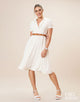 V NECKLINE PUFF SLEEVE MIDI DRESS