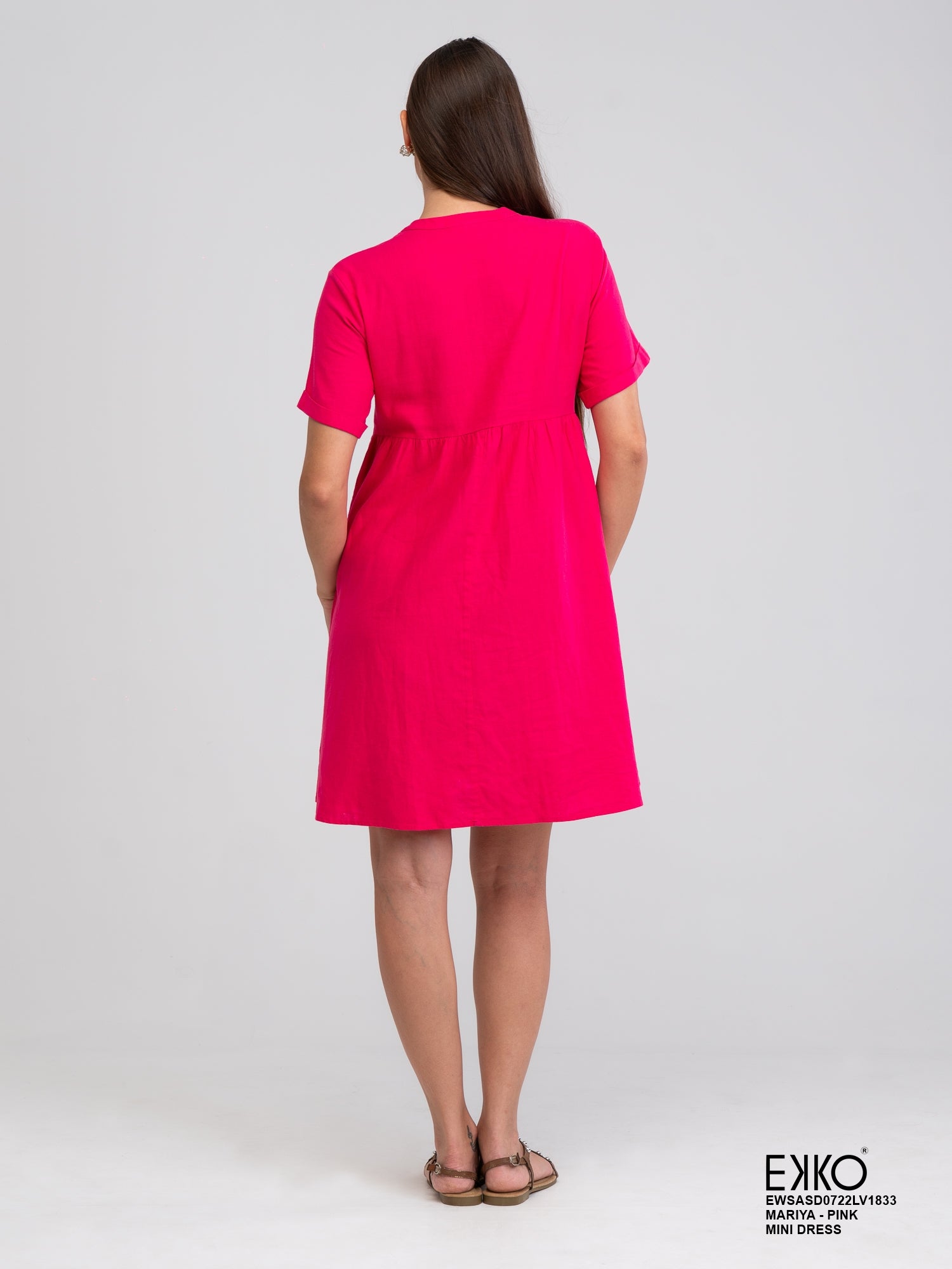 Effortlessly chic, the Turn Up Sleeve Mini Dress features sleek rolled-up sleeves, a flattering silhouette, and a modern mini length. Perfect for day-to-night styling with a touch of understated elegance.