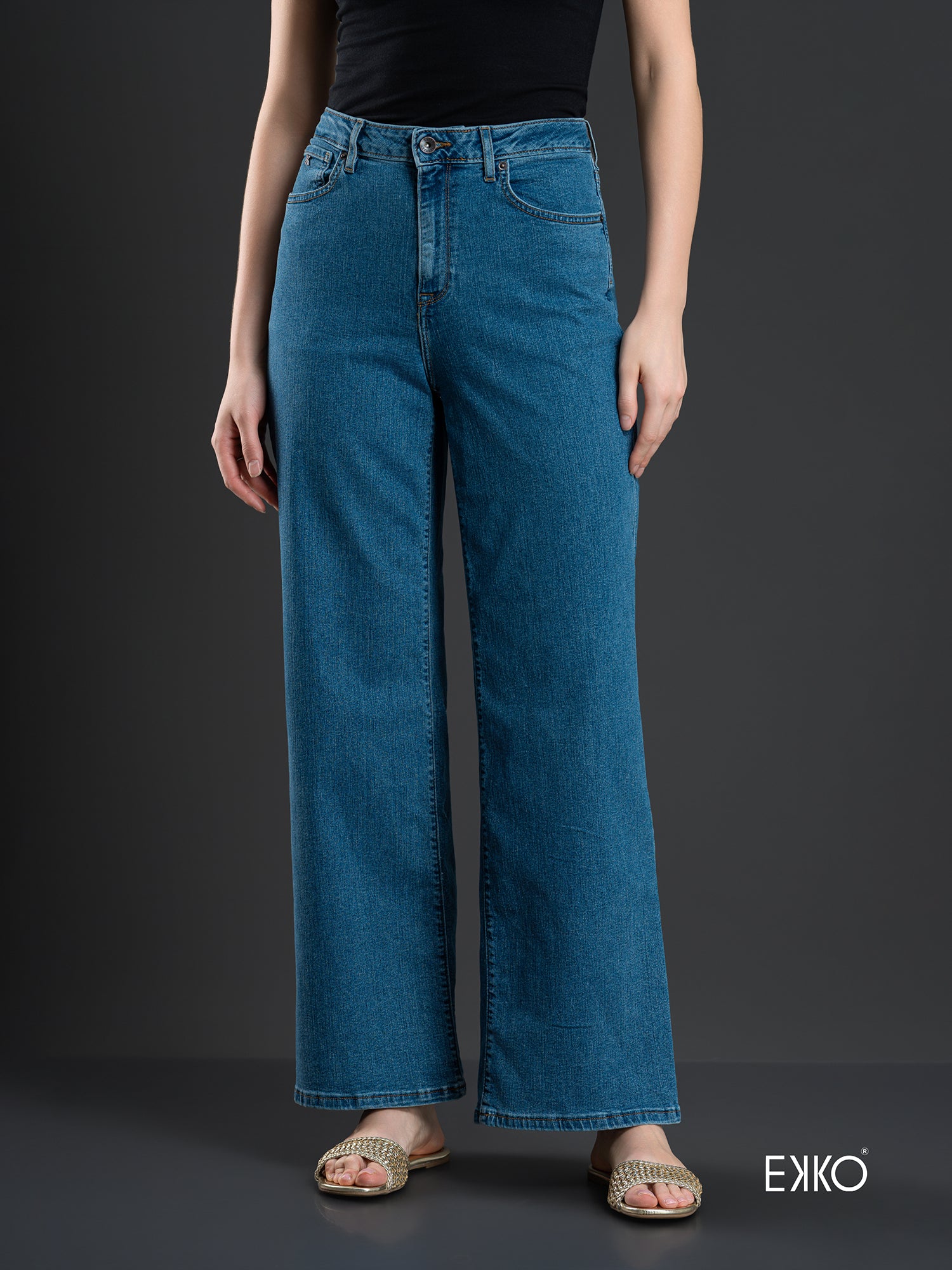 Women's Wide High Rise Jeans - Classic Mid Wash