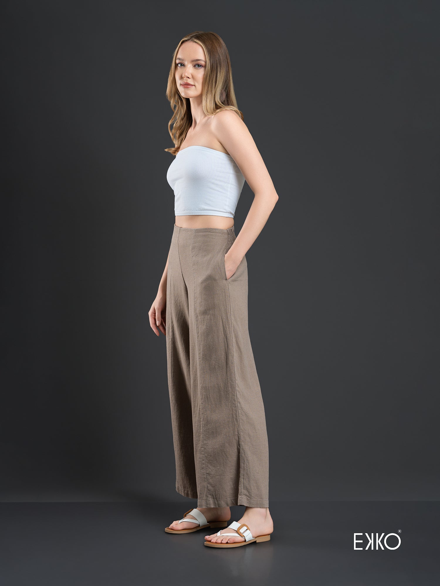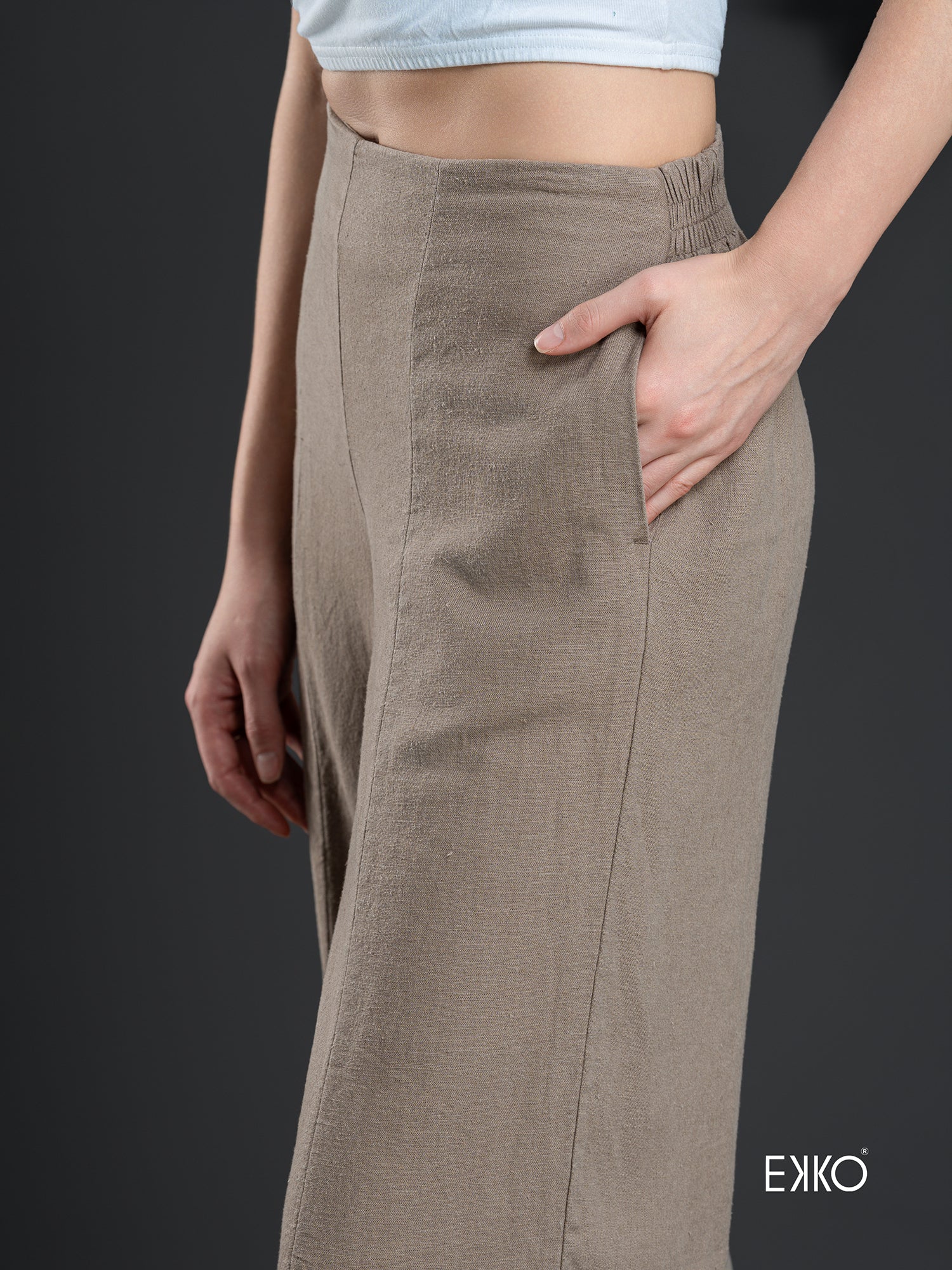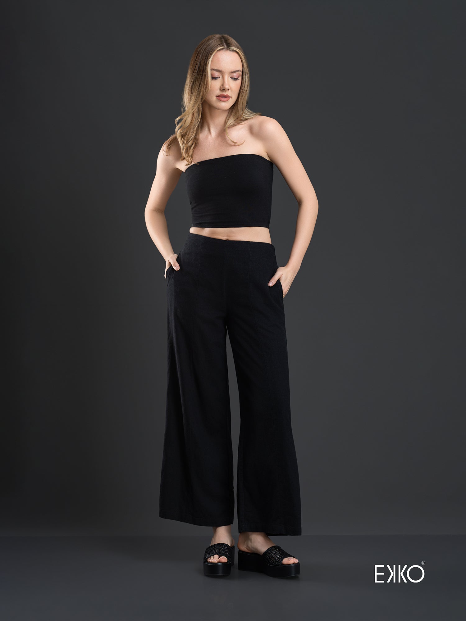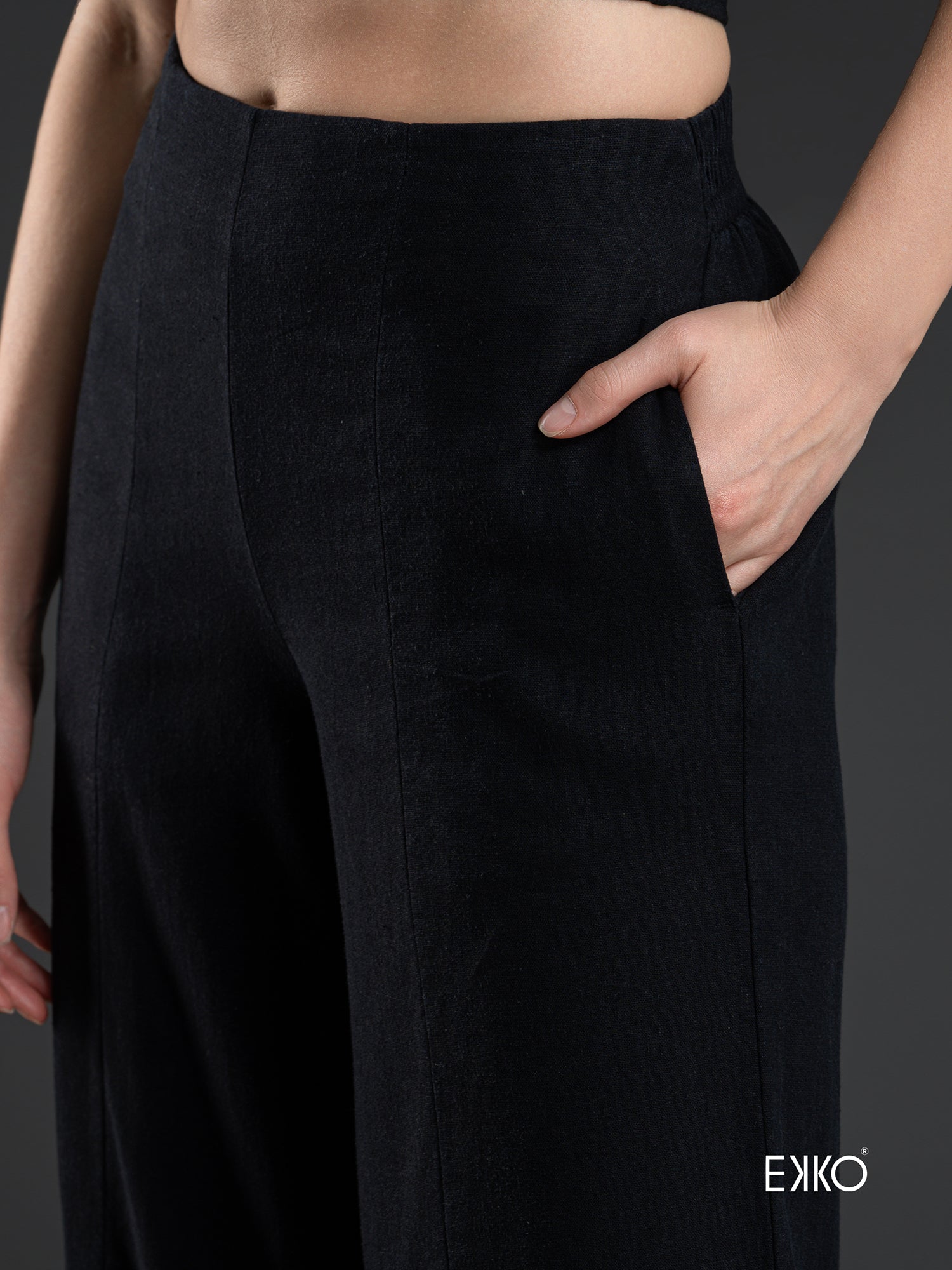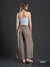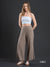 A statement piece with attitude. These mid-waist pants feature distinctive cut-and-sew detailing, adding dimension and edge to a clean, modern silhouette. Perfect for a bold, everyday look.