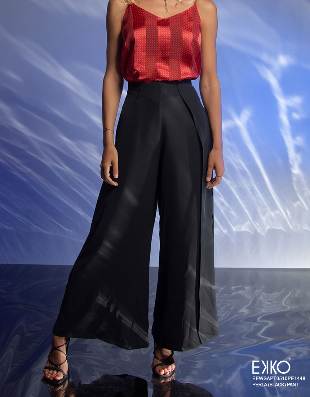 HIGH WAIST OVERLAP DETAIL WIDE LEG PANT