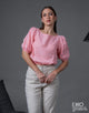 RAGALAN SLEEVED GATHERED TIE UP TOP