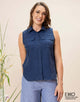 A sophisticated champagne top with a V-neckline, relaxed fit, button detail, and elegant long puff sleeves with cuffs perfect for polished workwear.