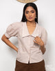 LOOSE FITTED DEEP NECK ROLL-UP SLEEVE SHIRT