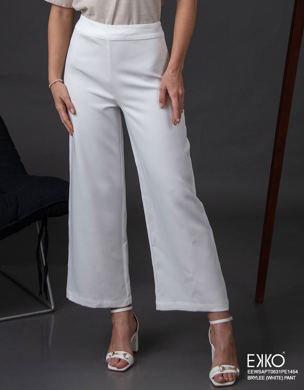 The Mid-Waisted White Pant is a sleek, straight-leg pant with a waist band and side zipper detail, designed for a modern, professional workwear look.