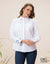 A smart casual white shirt featuring long sleeves with embroidered cuffs, a classic standard collar, and a button-down front. Perfect for effortless style with a refined touch.