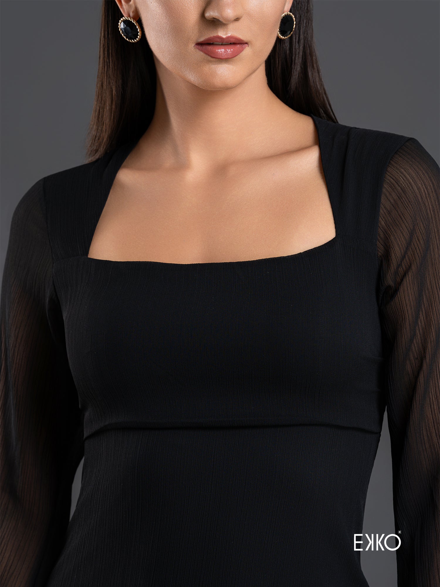 LONG SLEEVE SHEER MINI DRESS