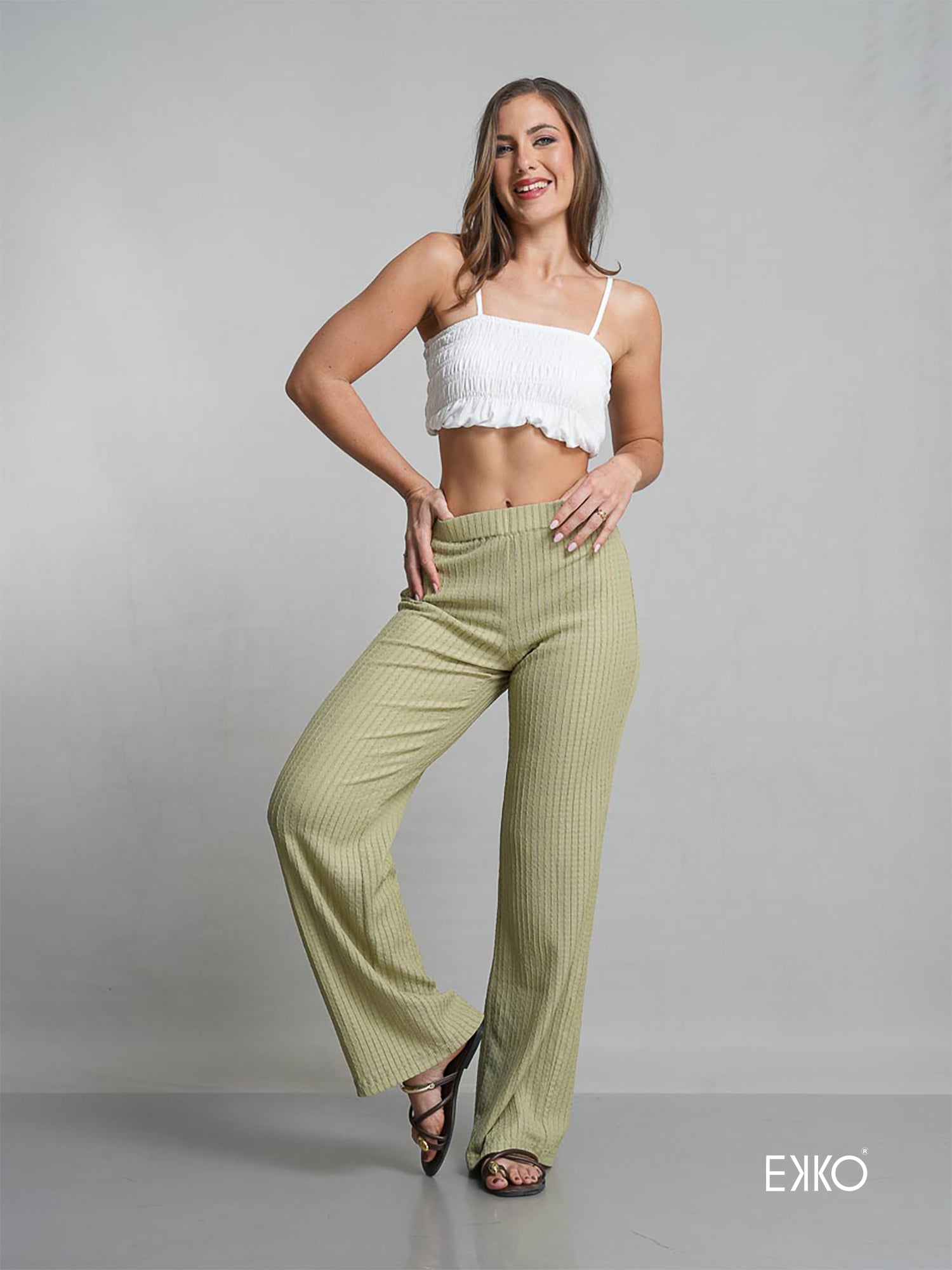 STREIGHT LEG PANT WITH ELASTICATED WAIST BAND