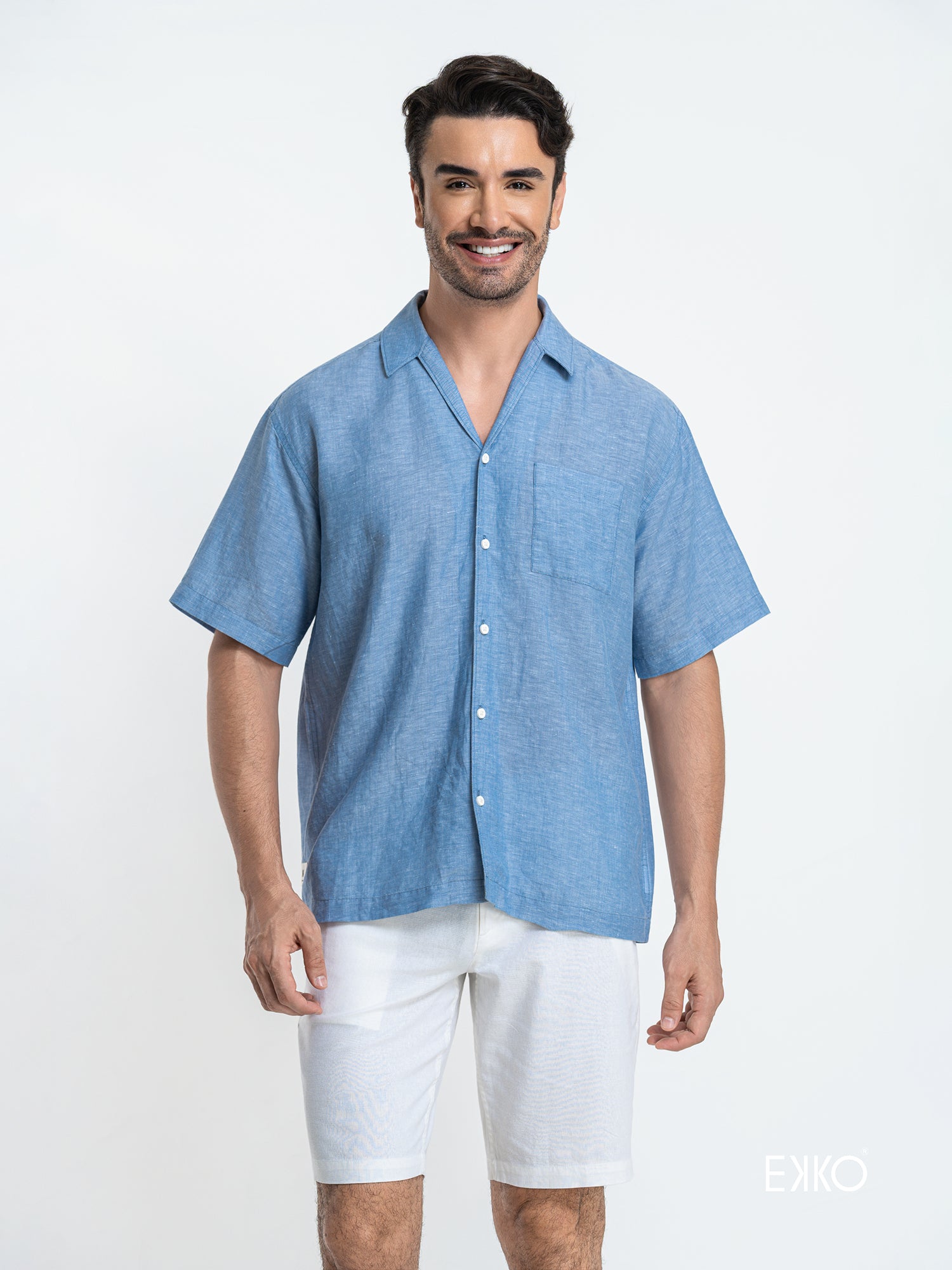 A short sleeve button-down shirt crafted in a breathable linen–lyocell blend for lightweight comfort. Designed with a relaxed fit, this style features a shaped lapel collar that adds a refined yet casual touch. The fabric offers a soft hand feel with natural airflow, making it ideal for warm-weather wear while maintaining a polished silhouette.