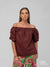 Perfect for evening occasions, this maroon top features a flattering off-the-shoulder neckline and chic short sleeves. Crafted from smooth, comfortable fabric, it adds a touch of sophistication to any outfit. Pair it with tailored pants or a sleek skirt for a timeless, refined look.