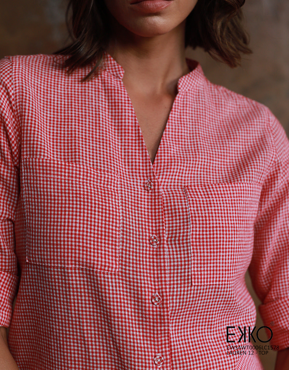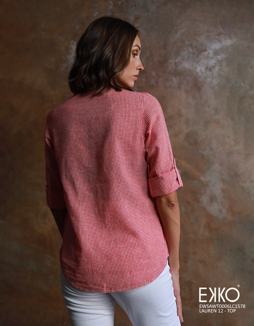 LOOSE FITTED DEEP NECK ROLL-UP SLEEVE SHIRT