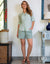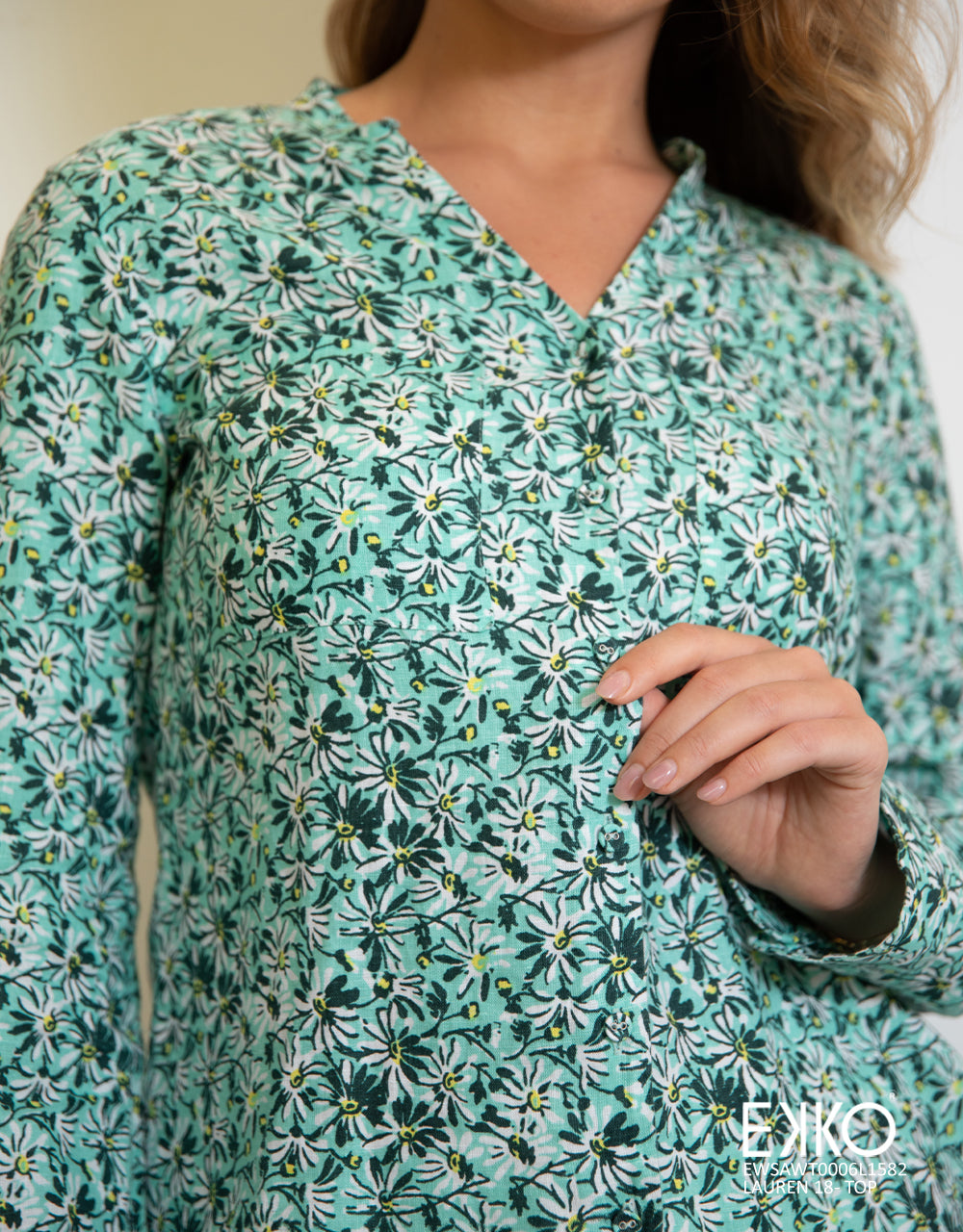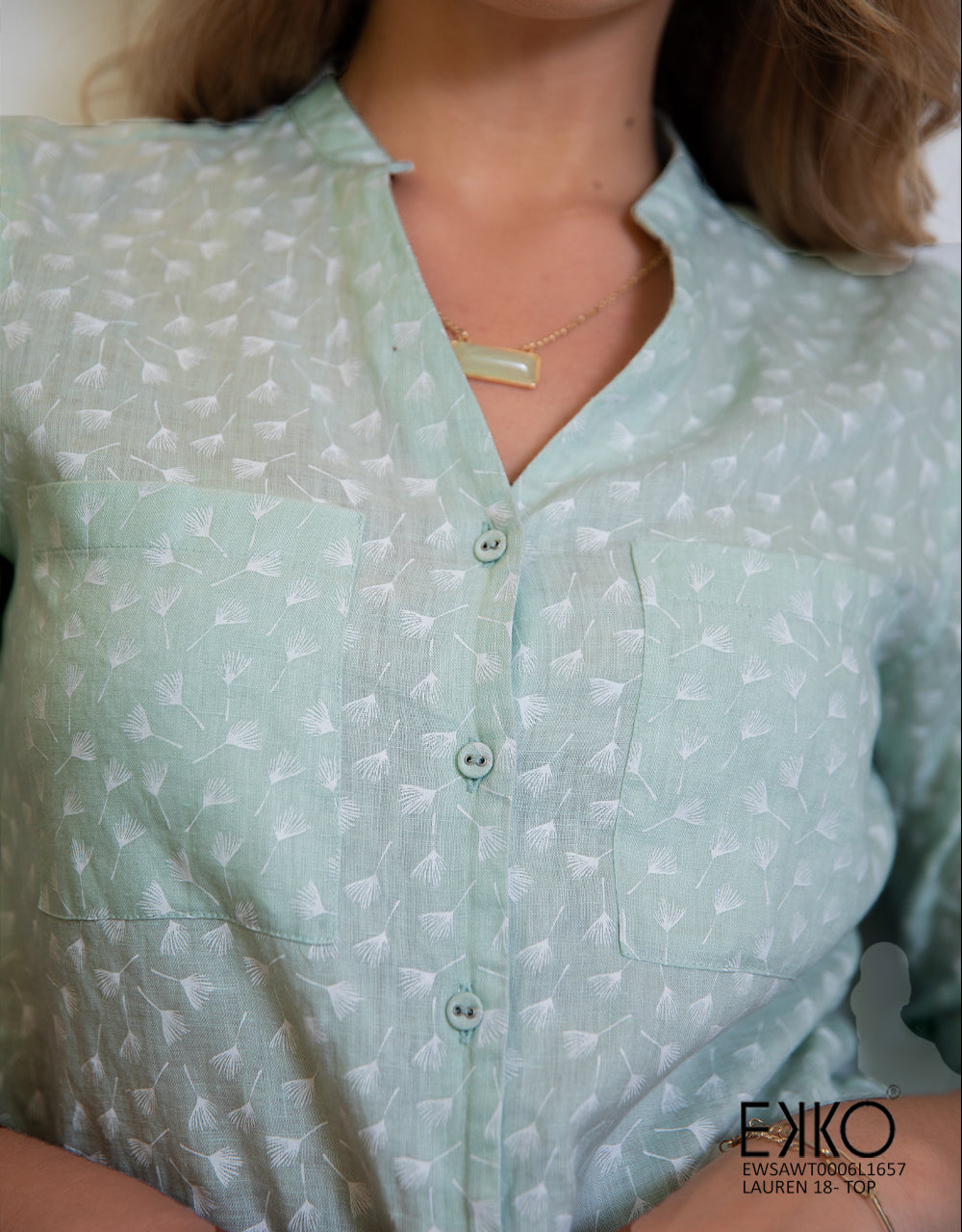 LOOSE FITTED DEEP NECK ROLL-UP SLEEVE SHIRT