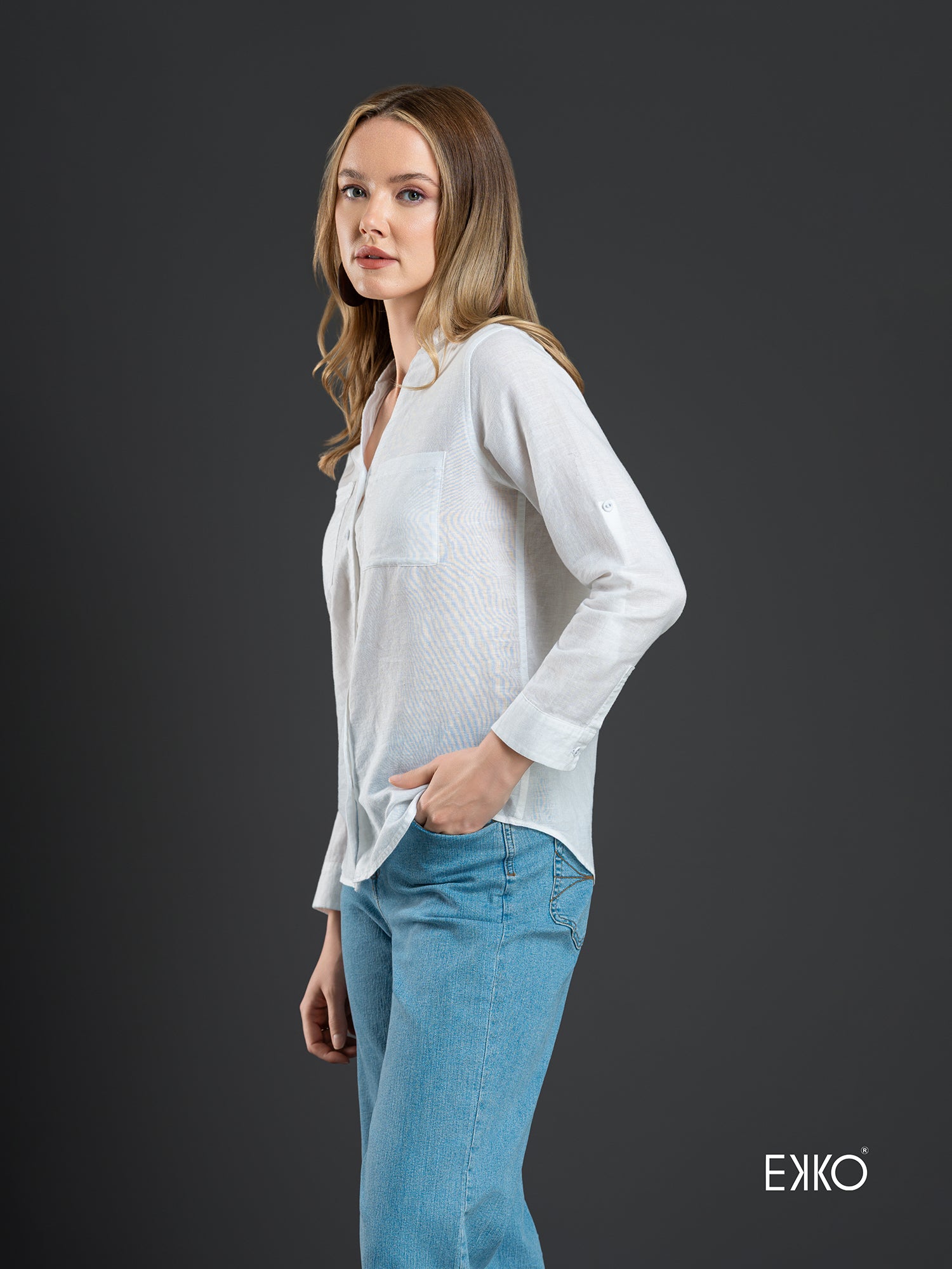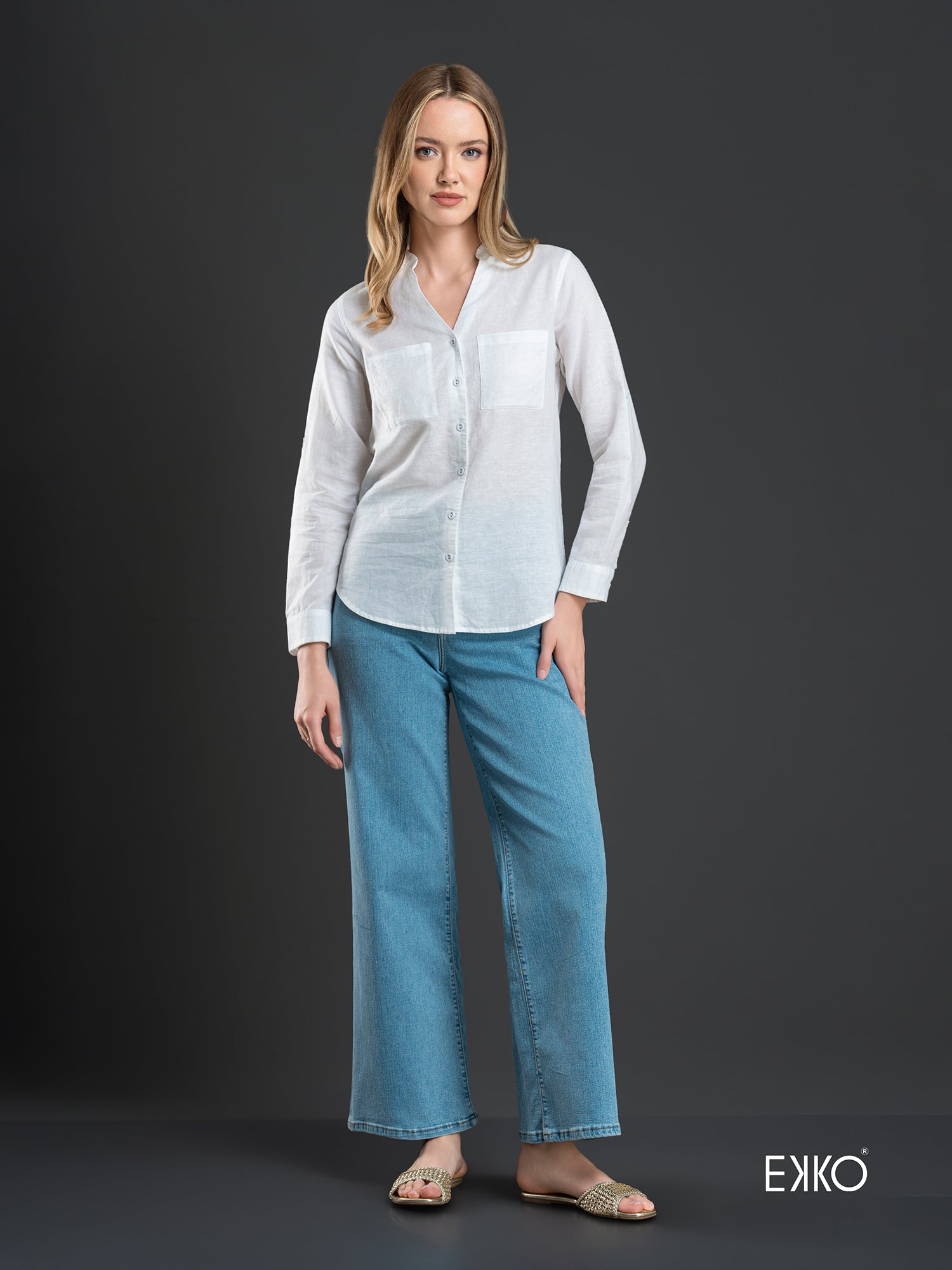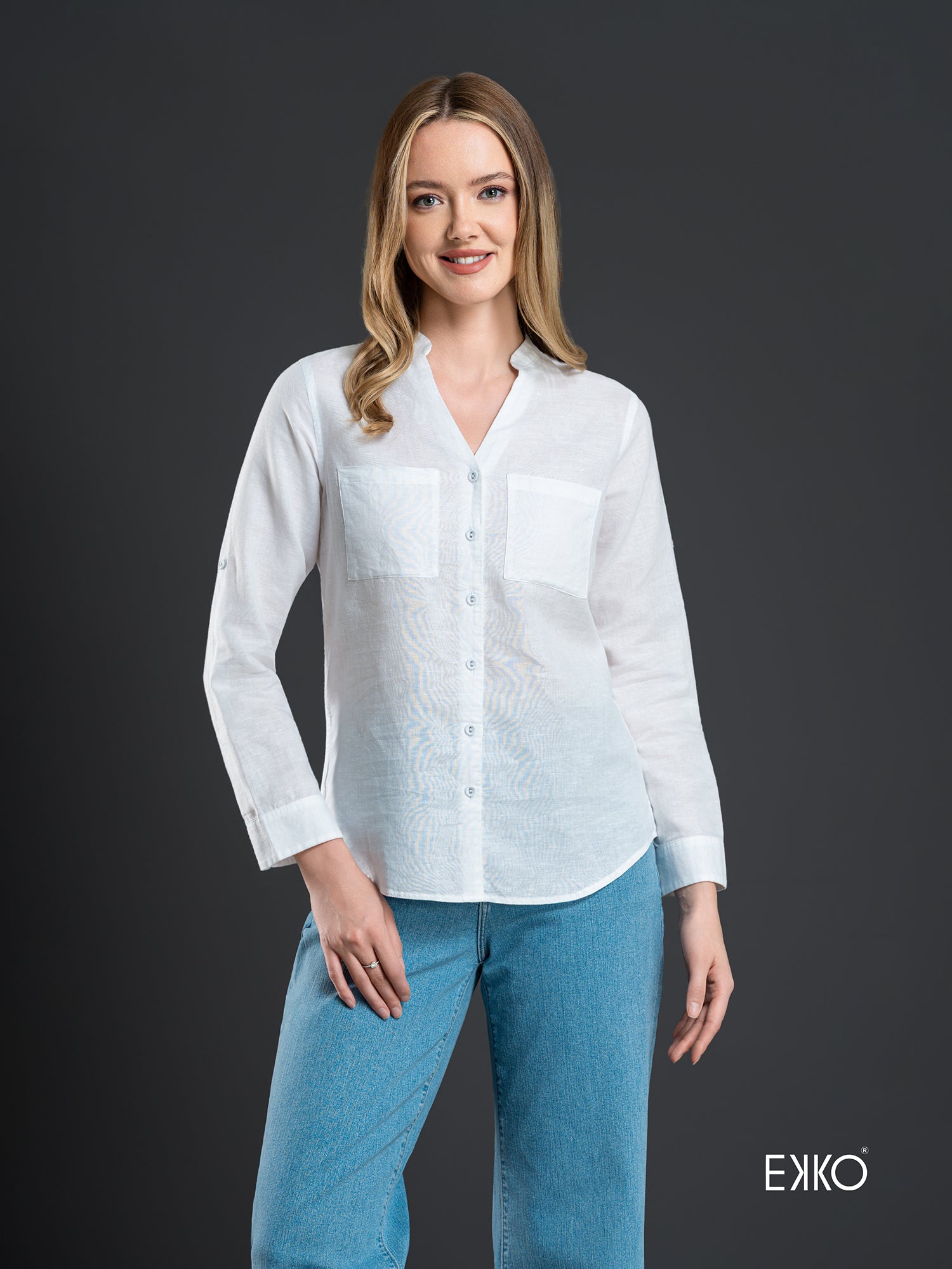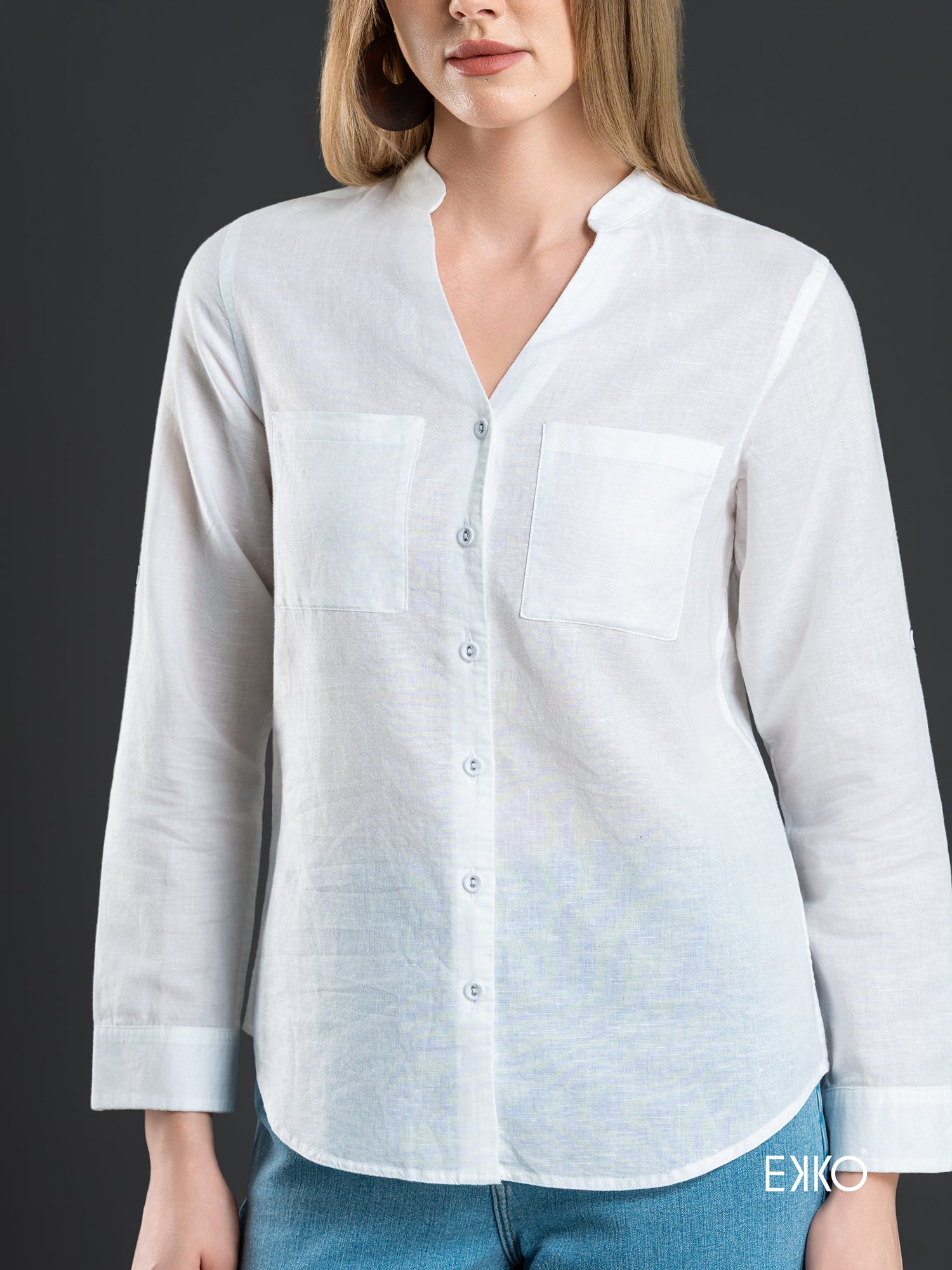 A lightweight shirt featuring a deep neckline with rolled up sleeves promises the casual yet sophisticated formal touch while the loose fit ensures the maximum comfort.