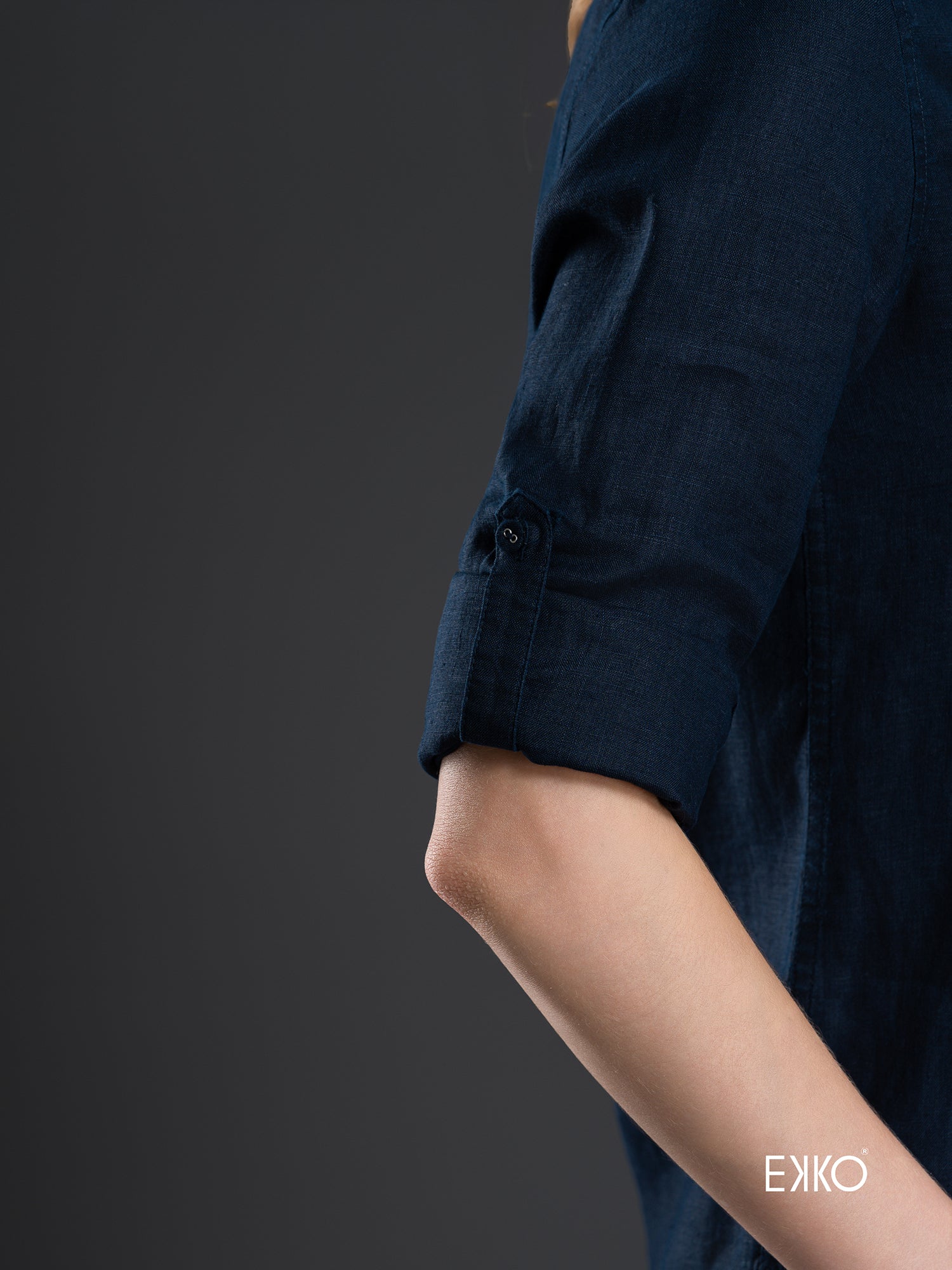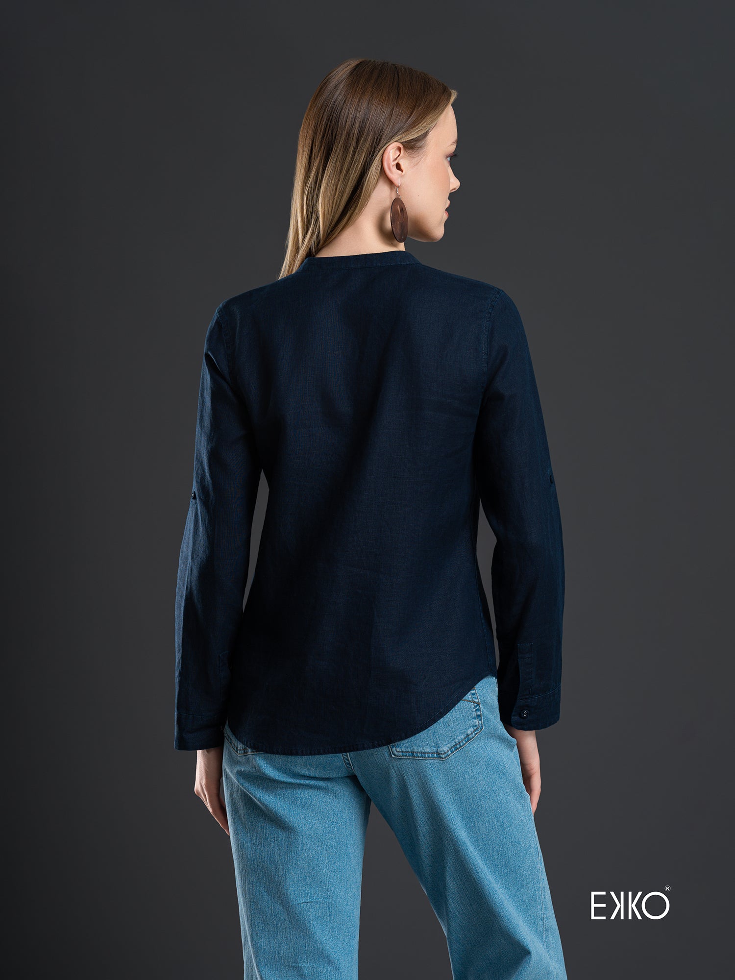 LOOSE FIT DEEP NECK ROLL-UP SLEEVE SHIRT