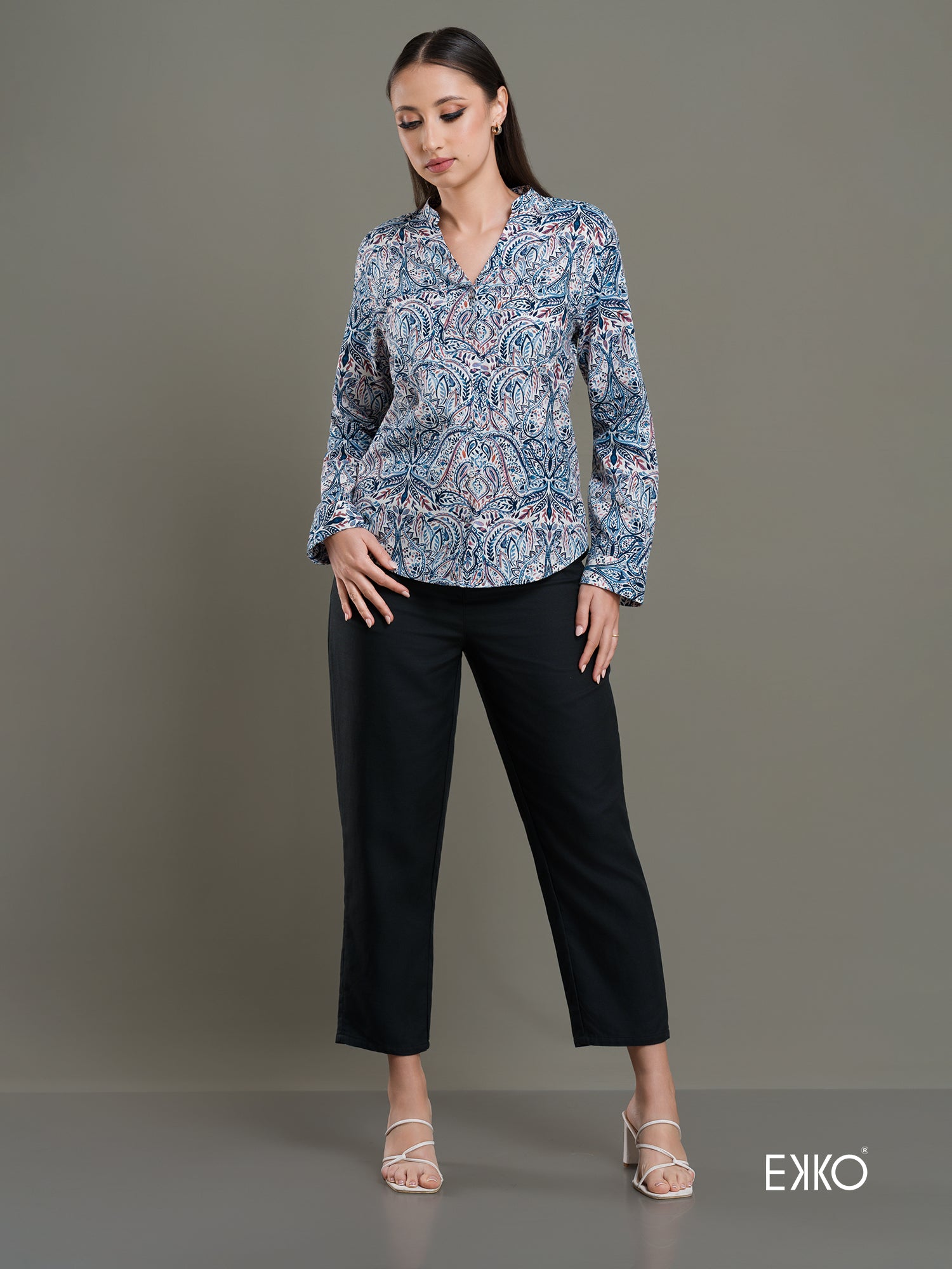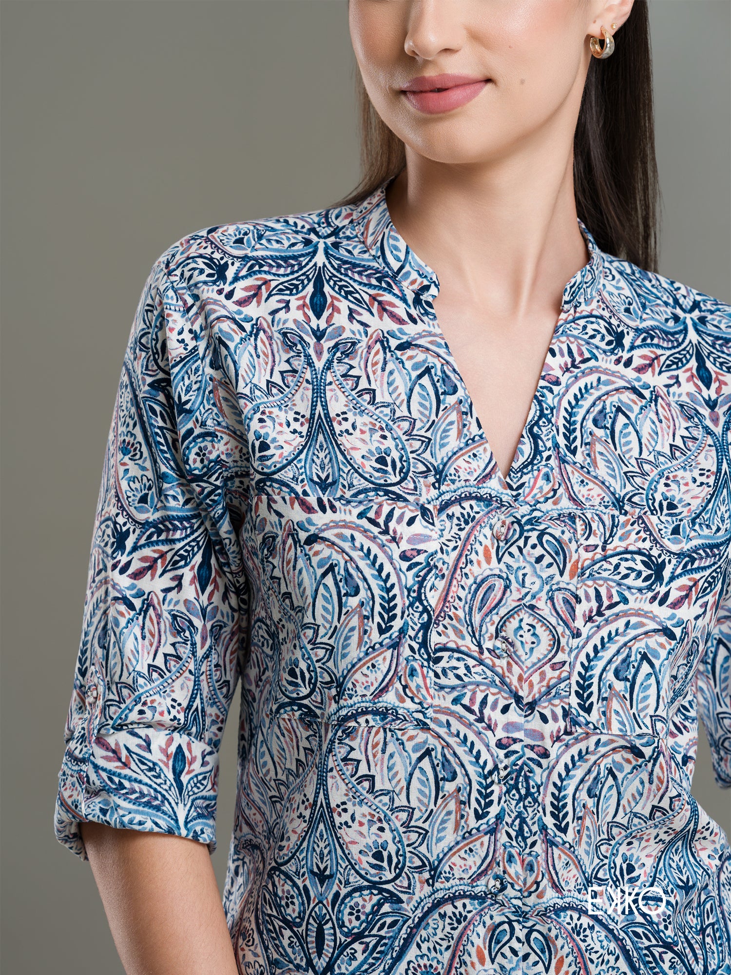 A relaxed shirt featuring a deep neckline and roll-up sleeves, combining comfort with a casual, effortless style