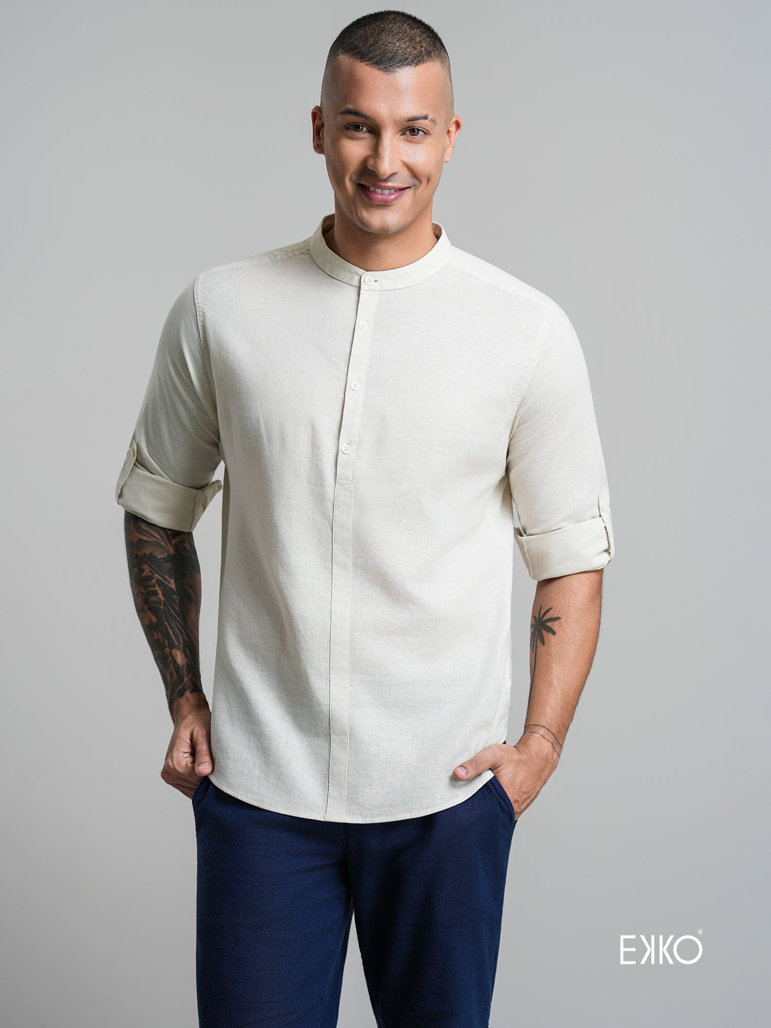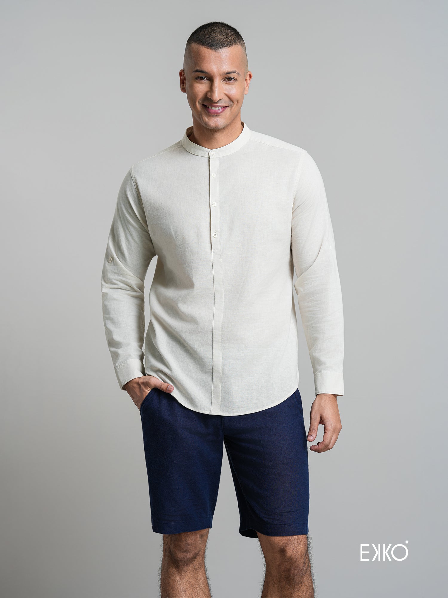 Linen Blend Long Sleeve Shirt - EMSACS0842LCELS1785
