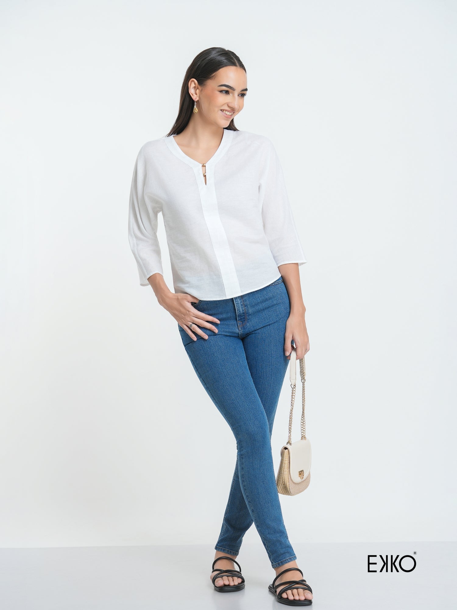 A flattering, feminine essential featuring delicate smocking for texture and stretch. Made from soft, breathable fabric perfect for dressing up or down.