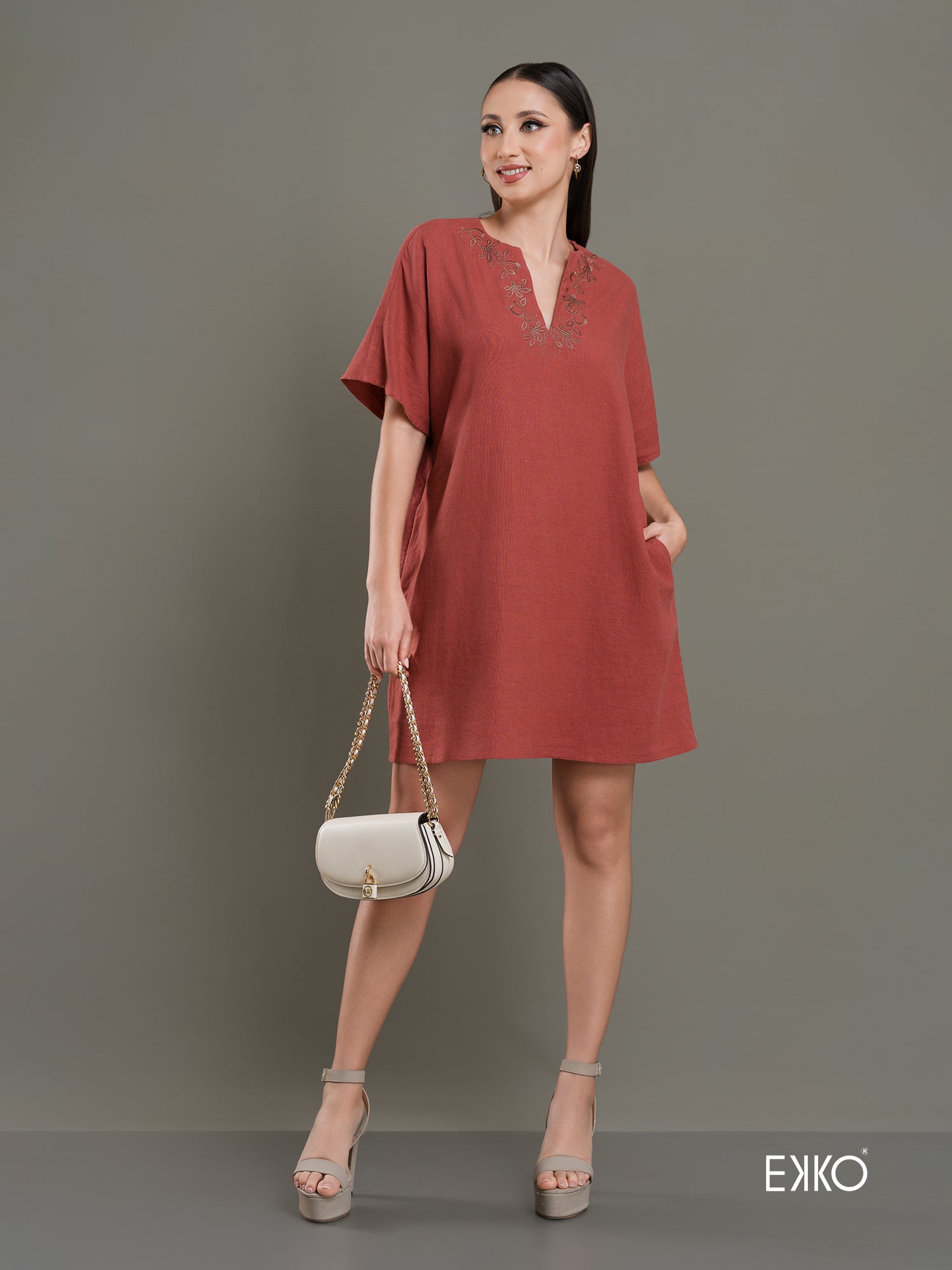 EMBROIDERY DETAIL RELAXED MINI DRESS