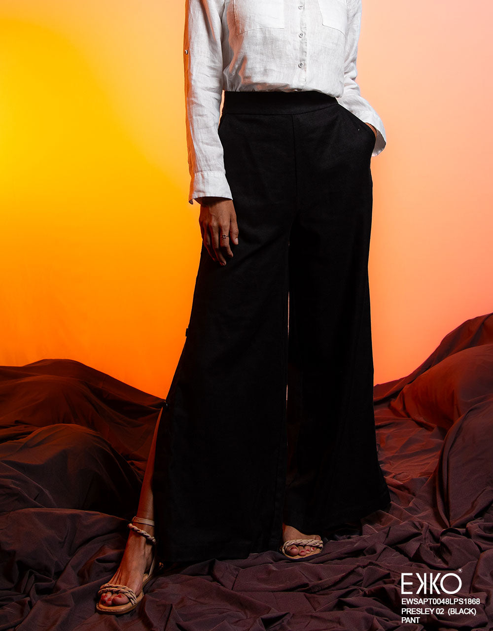 Step into New Year's Eve with elegance in these wide-leg pants, featuring a chic side button closure. In classic black, they offer a flattering, flowy silhouette that's perfect for celebrating in style.