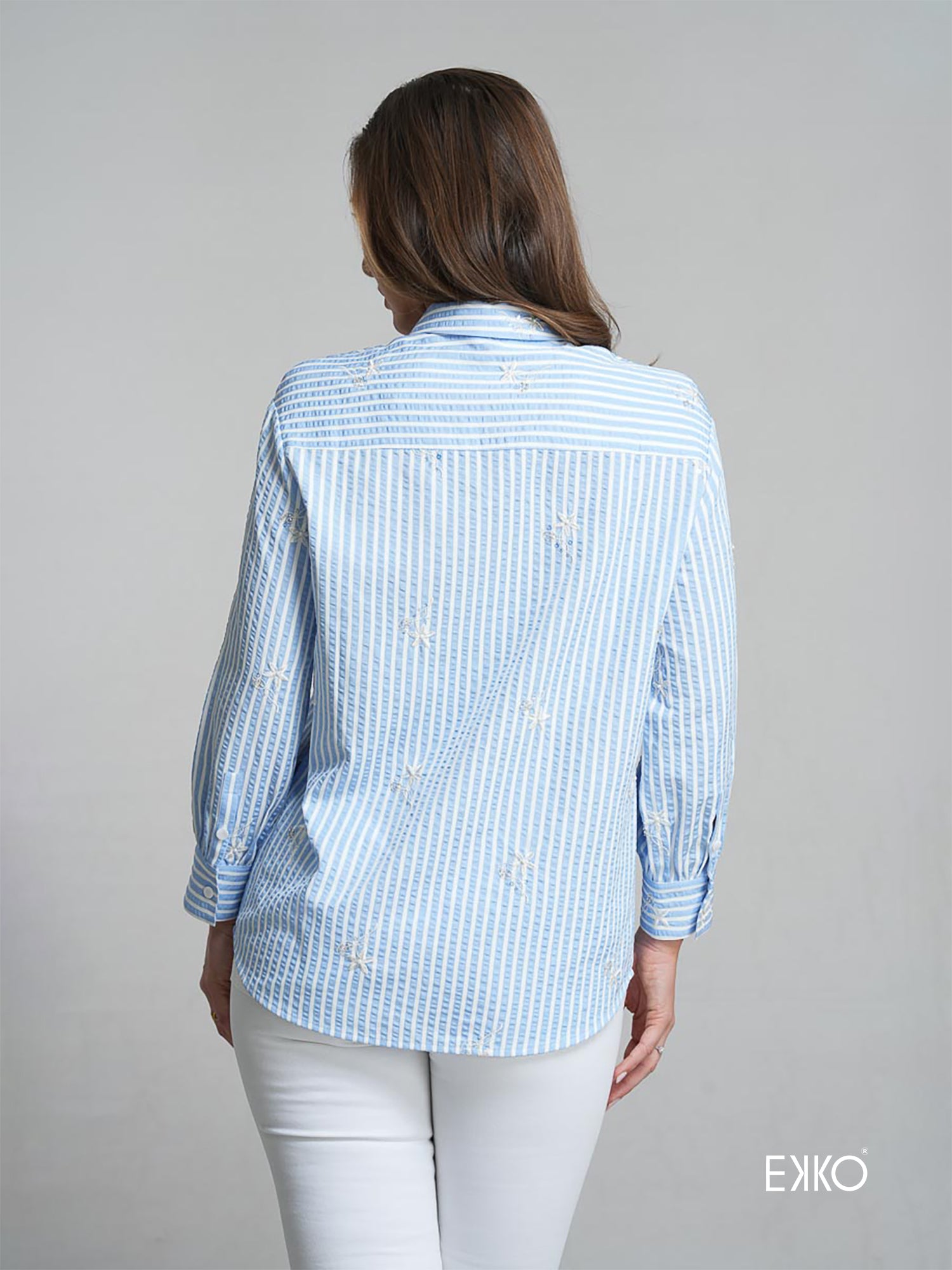 Reed is a classic long-sleeve shirt crafted in embellished striped fabric, featuring a standard collar, button placket, and structured back yoke. Effortlessly versatile, it’s perfect for both work and casual wear.