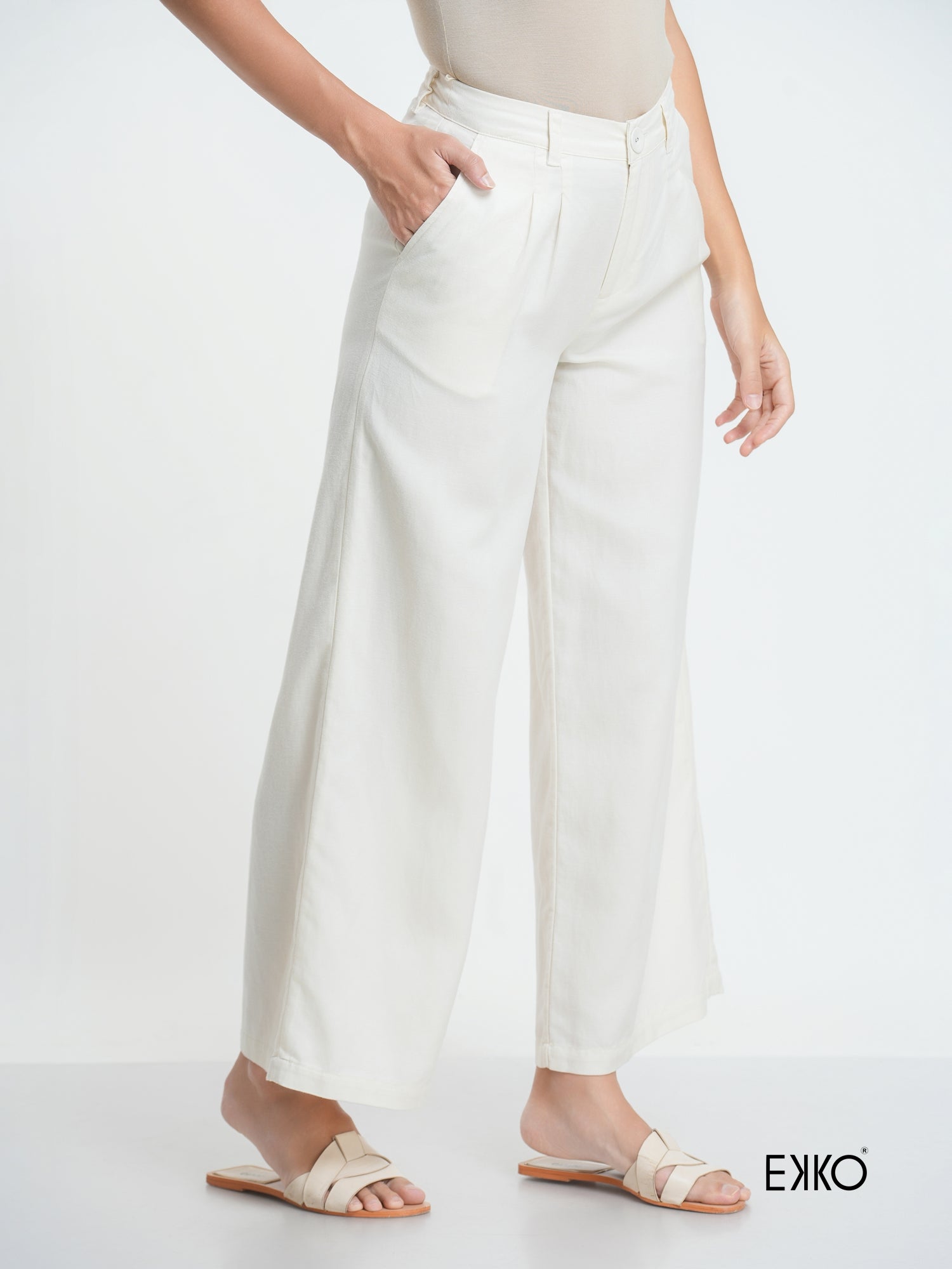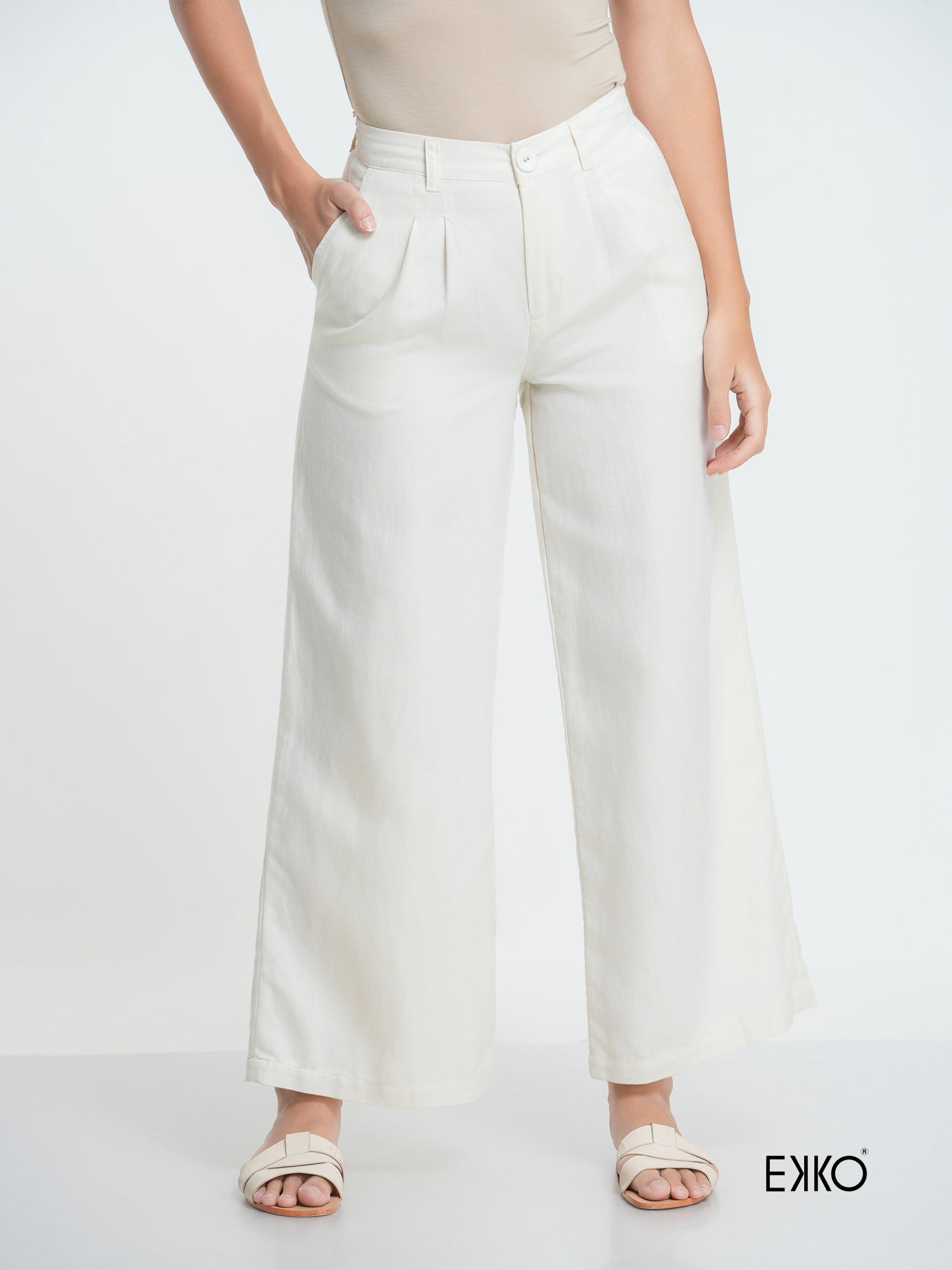 Sleek and sophisticated, these mid-waist pants feature elegant pleat detailing for a tailored silhouette. Perfect for effortless chic, they blend classic style with modern flair—ideal for work or weekend looks.